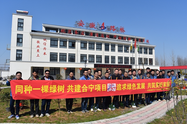 此次植樹活動以“同種一棵綠樹 共建合寧項目追求綠色發(fā)展 共筑美好家園”為主題。通過此次活動,不僅給項目部駐地和拌合站增添一片綠色,更增進了道路、路面兩家分子公司員工之間的情感。