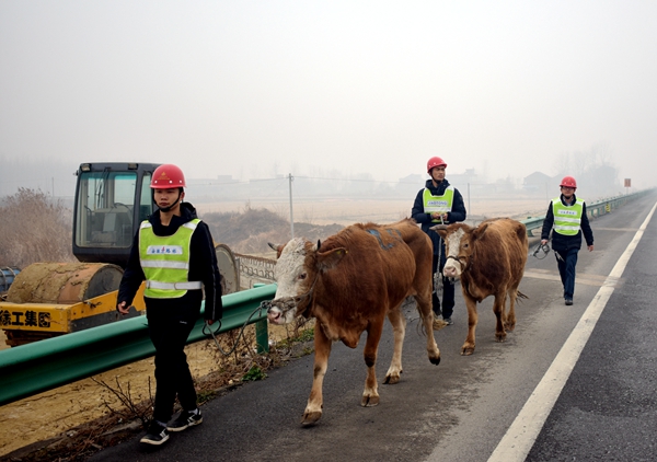 12月30日上午,位于公司承建的合寧05標境內(nèi)高速上驚現(xiàn)牛群。情況萬分危急,合寧05標“黨員應急小分隊”歷時6個多小時,合力將牛群一一找回并固定在安全位置,成功化解了一場高速安全危機。