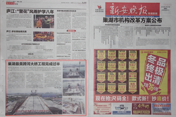 《新安晚報(bào)環(huán)湖新聞》持續(xù)報(bào)道亞父路裕溪河特大橋施工進(jìn)展