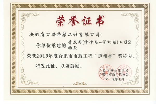 市政分公司三項(xiàng)目喜獲“廬州杯”