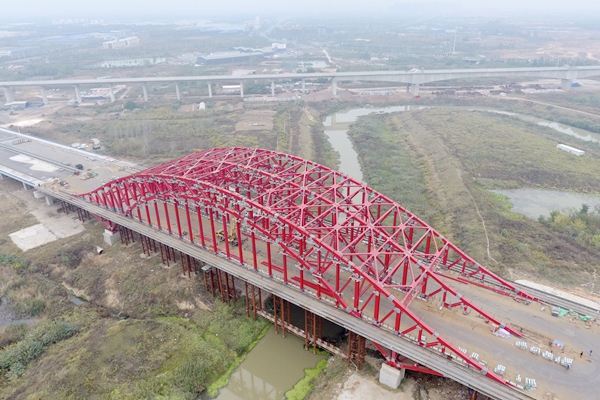 集賢路項(xiàng)目跨派河鋼桁拱橋順利合龍