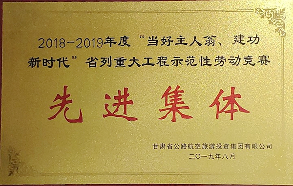 因在甘肅省公航旅集團(tuán)開展的2018-2019年度“當(dāng)好主人翁、建功新時(shí)代”省列重大工程示范性勞動(dòng)競賽活動(dòng)中表現(xiàn)優(yōu)異,11月17日,銀百高速TY14標(biāo)被授予“先進(jìn)集體”稱號,項(xiàng)目負(fù)責(zé)人同時(shí)榮獲“優(yōu)秀項(xiàng)目經(jīng)理”稱號。