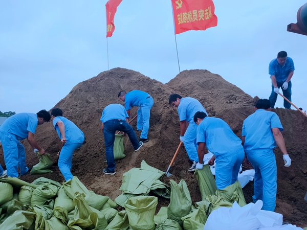 7月23日凌晨,市政分公司組織地鐵4號線、引江濟(jì)淮2標(biāo)等項(xiàng)目共計150余名人員、3臺裝載機(jī)、10余臺渣土車,馳援徽州大道項(xiàng)目取土場,連續(xù)奮戰(zhàn)10余小時,完成沙袋裝填轉(zhuǎn)運(yùn)10000只,土方運(yùn)輸2000方,為環(huán)湖大道杭埠河一線抗洪現(xiàn)場提供了有力支援。