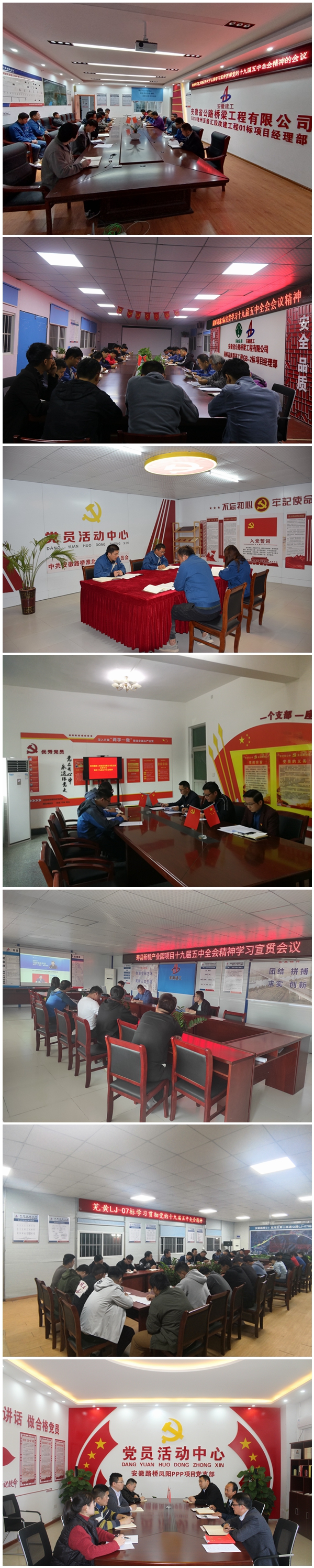 一是及時行動,全面動員。道路分公司黨總支及時下發(fā)通知,組織各支部深入學習全會精神,切實做好貫徹落實工作。二是線上線下齊發(fā)力,營造氛圍。蕪黃07標、固蚌02標項目黨支部通過設(shè)置宣傳展板、開展主題黨日活動等形式,營造濃厚學習氛圍,充分調(diào)動黨員干部的學習熱情。三是自學與集中學習同步開展,學深悟透。G318、宣城PPP項目黨支部通過QQ工作群、“學習強國”學習小組等渠道積極宣傳推送黨的十九屆五中全會最新動態(tài),對重點學習內(nèi)容進行研討,確保學深悟透。四是緊密聯(lián)系當前工作,抓好結(jié)合。將黨的十九屆五中全會精神學習同習近平總書記考察安徽重要講話指示精神結(jié)合起來,同步做好大學習、大宣傳、大貫徹,聯(lián)系項目當前工作重點、難點和痛點,認真謀劃,補齊短板,抓好各項工作落實。
