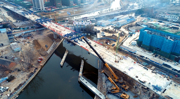 一橋飛架泗州,通途橫貫東西。12月16日,隨著中跨合龍段混凝土澆筑完成,公司承建的皖北縣城第一高架---泗縣玉蘭路高架橋主橋順利實現(xiàn)合龍。