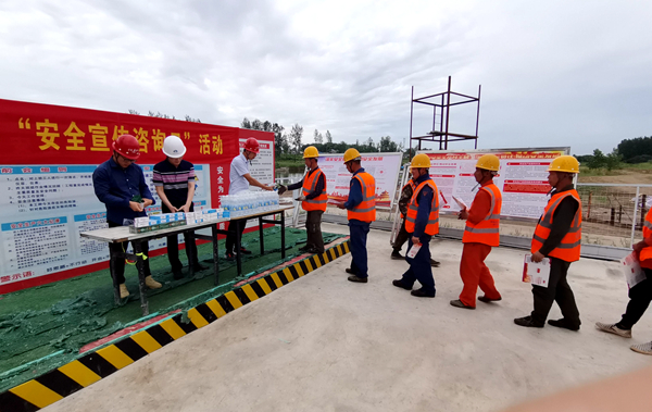 源頭防控嚴(yán)守“安全線”。項(xiàng)目結(jié)合“安全生產(chǎn)月”活動(dòng),認(rèn)真開展安全教育培訓(xùn),觀看安全教育警示片,開展安全宣傳咨詢?nèi)栈顒?dòng),組織安全綜合大檢查,普及了安全生產(chǎn)常識,強(qiáng)化了安全生產(chǎn)意識,提高了安全工作能力,為項(xiàng)目大干的平穩(wěn)推進(jìn)營造了濃厚安全氛圍,筑牢了安全生產(chǎn)防線。