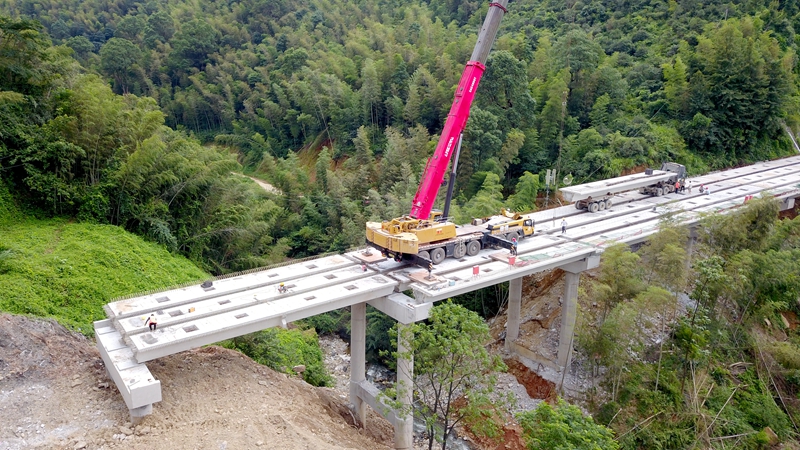9月11日下午,吉康高速改擴建C1標楊公山大橋最后一片預制梁板的架設(shè)成功,為下一步主線交通導改及全線通車打下了基礎(chǔ)。