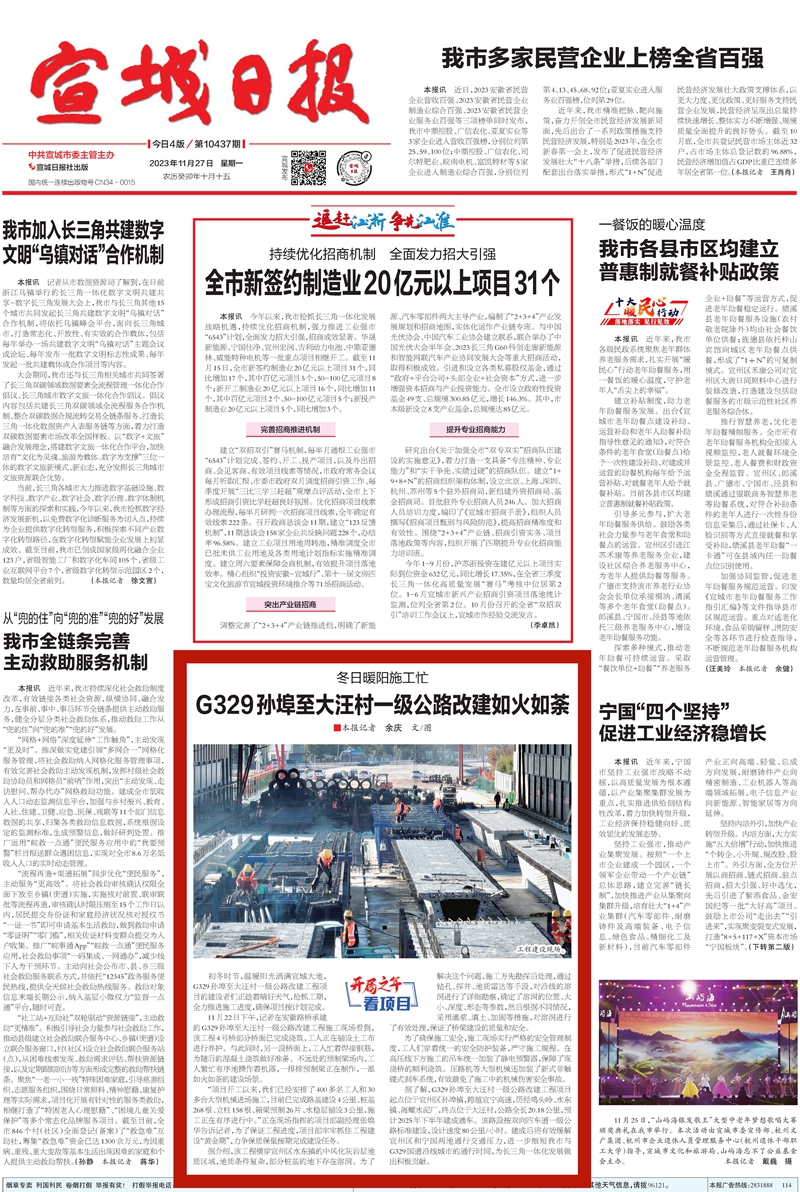【名媒聚焦】宣城日報:冬日暖陽施工忙 G329孫埠至大汪村一級公路改建如火如荼
