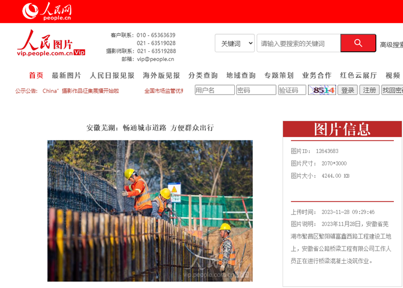 11月28日,中國新聞圖片網、人民網、安徽新聞網等多家央媒和省級媒體關注公司承建的繁昌區(qū)富鑫西路項目工程建設,以圖組形式聚焦項目橋梁混凝土澆筑和路基施工。