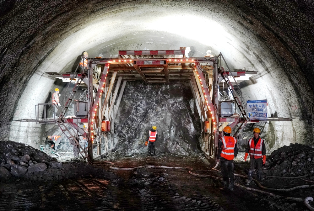 當(dāng)天清晨,薄霧如輕紗般籠罩著大地,江梓山山腰的隧道口處,已是一片熱火朝天的繁忙景象。巨大的機(jī)械臂在晨光中揮舞,在施工現(xiàn)場(chǎng)劃出一道道剛勁有力的弧線。工人們身著醒目的安全服,手持風(fēng)槍鉆,熟練而專注地操作著。隨著爆破孔眼逐個(gè)成孔以及炸藥裝填工作穩(wěn)步推進(jìn),爆破前的準(zhǔn)備工作逐漸進(jìn)入尾聲。