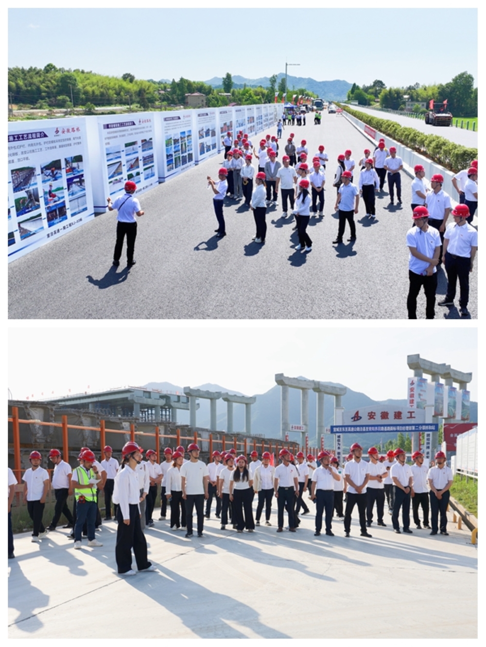 在安徽路橋宣涇高速一期03標(biāo)項(xiàng)目,青年們參觀了項(xiàng)目駐地及黨群活動(dòng)場(chǎng)所,在施工現(xiàn)場(chǎng)觀摩了解了瀝青無(wú)人攤壓技術(shù)和新澤西護(hù)欄預(yù)制安裝等施工工藝。在安徽水利涇青高速二分部,青年們先后參觀了青弋江特大橋安全文明施工以及場(chǎng)站和安全體驗(yàn)館標(biāo)準(zhǔn)化建設(shè)情況。