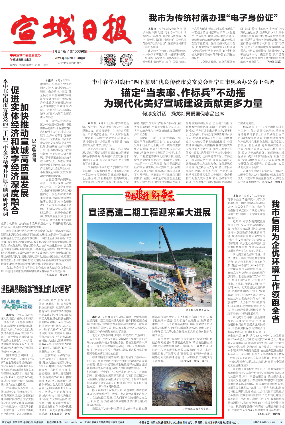 【名媒聚焦】宣城日?qǐng)?bào):宣涇高速二期工程迎來重大進(jìn)展