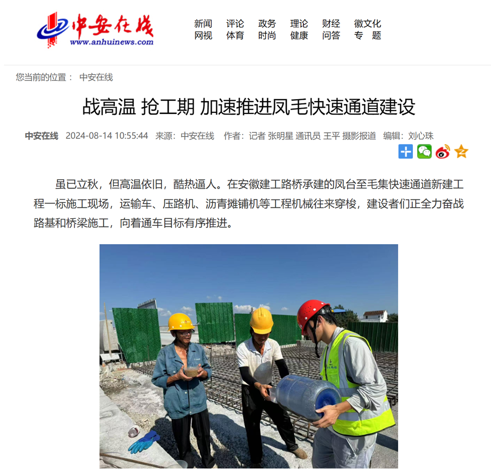 【名媒聚焦】中安在線、淮河早報:戰(zhàn)高溫 搶工期 加速推進鳳毛快速通道建設(shè)