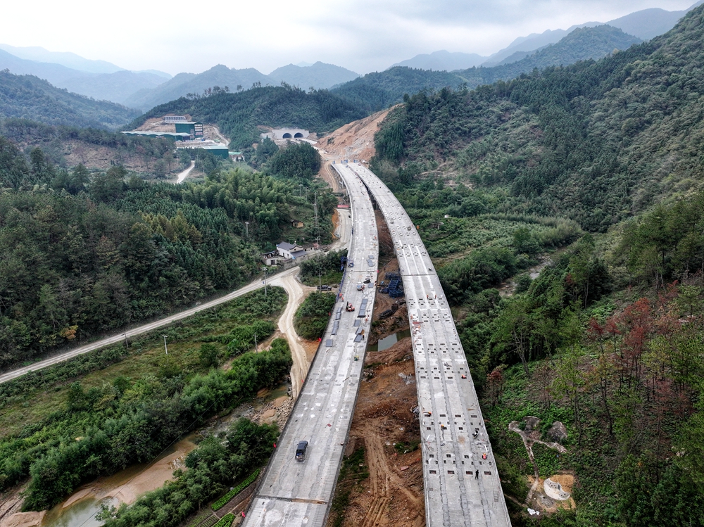 “項目建設過程中最大的挑戰(zhàn)就是皖南山區(qū)復雜的地形地貌?!睕芮喔咚俾坊访鏄思夹g負責人袁寶軍告訴記者,項目團隊通過科學規(guī)劃、精準施策,對施工現(xiàn)場進行了全面細致的勘查與分析,制定了詳細的施工計劃和進度安排。在施工過程中,團隊根據(jù)實際情況及時調(diào)整方案,優(yōu)化資源配置,確保每一道工序都能高效有序推進。目前,項目的控制性工程鳳形山隧道、合溪隧道均已實現(xiàn)雙線貫通,碧山隧道掘進完成83.5%、梁板架設完成65%,路基施工完成80%左右。按照計劃,路基主體施工將在明年3月份完成。