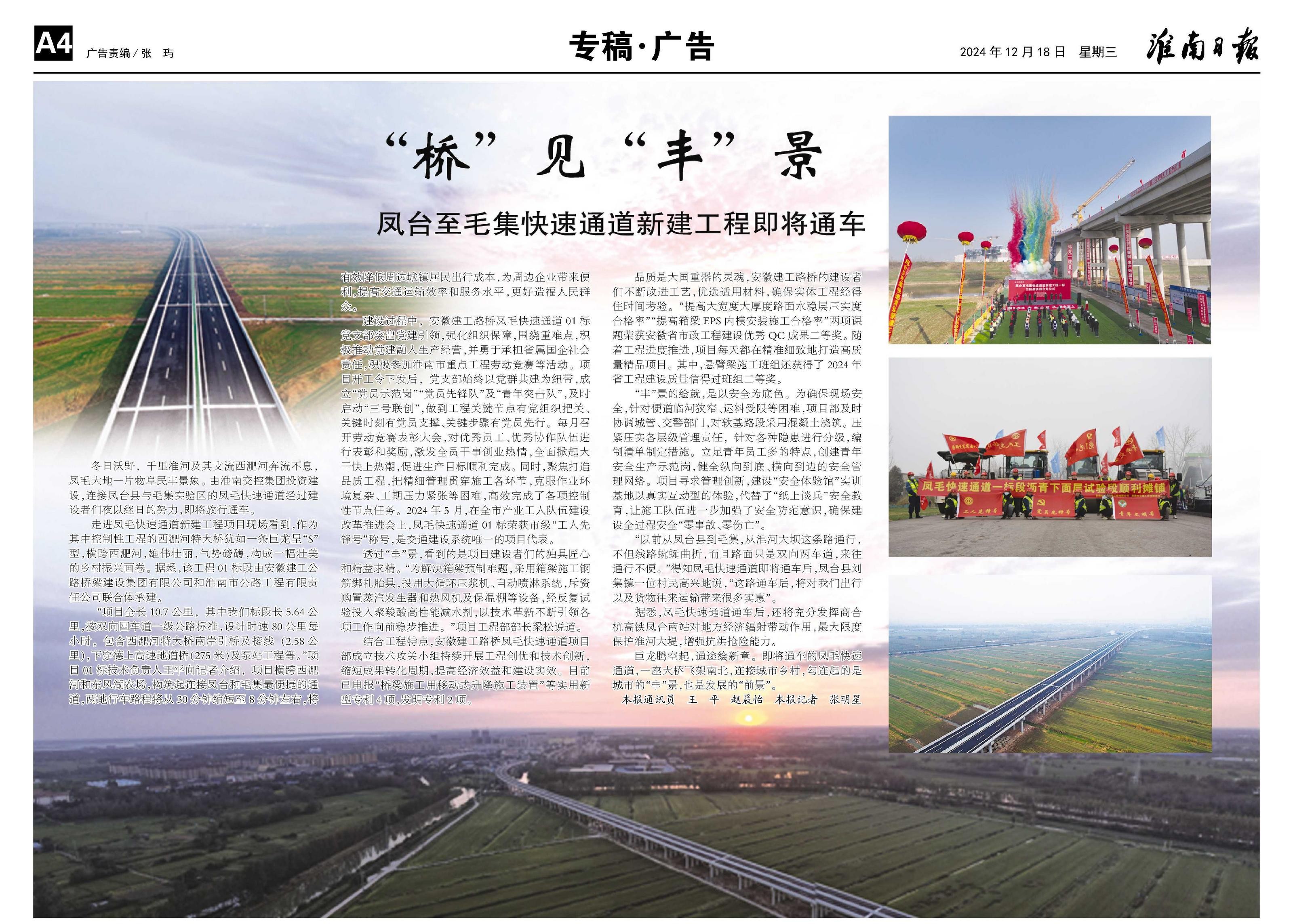 【名媒聚焦】淮南日報(bào):“橋”見“豐”景——鳳臺至毛集快速通道新建工程即將通車