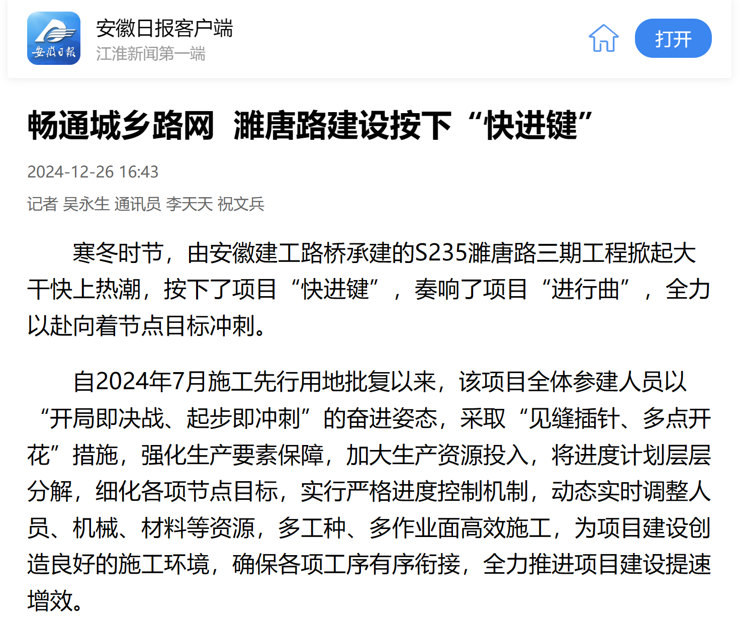 【名媒聚焦】安徽日?qǐng)?bào)客戶端:暢通城鄉(xiāng)路網(wǎng) S235濉唐路三期項(xiàng)目建設(shè)按下“快進(jìn)鍵”
