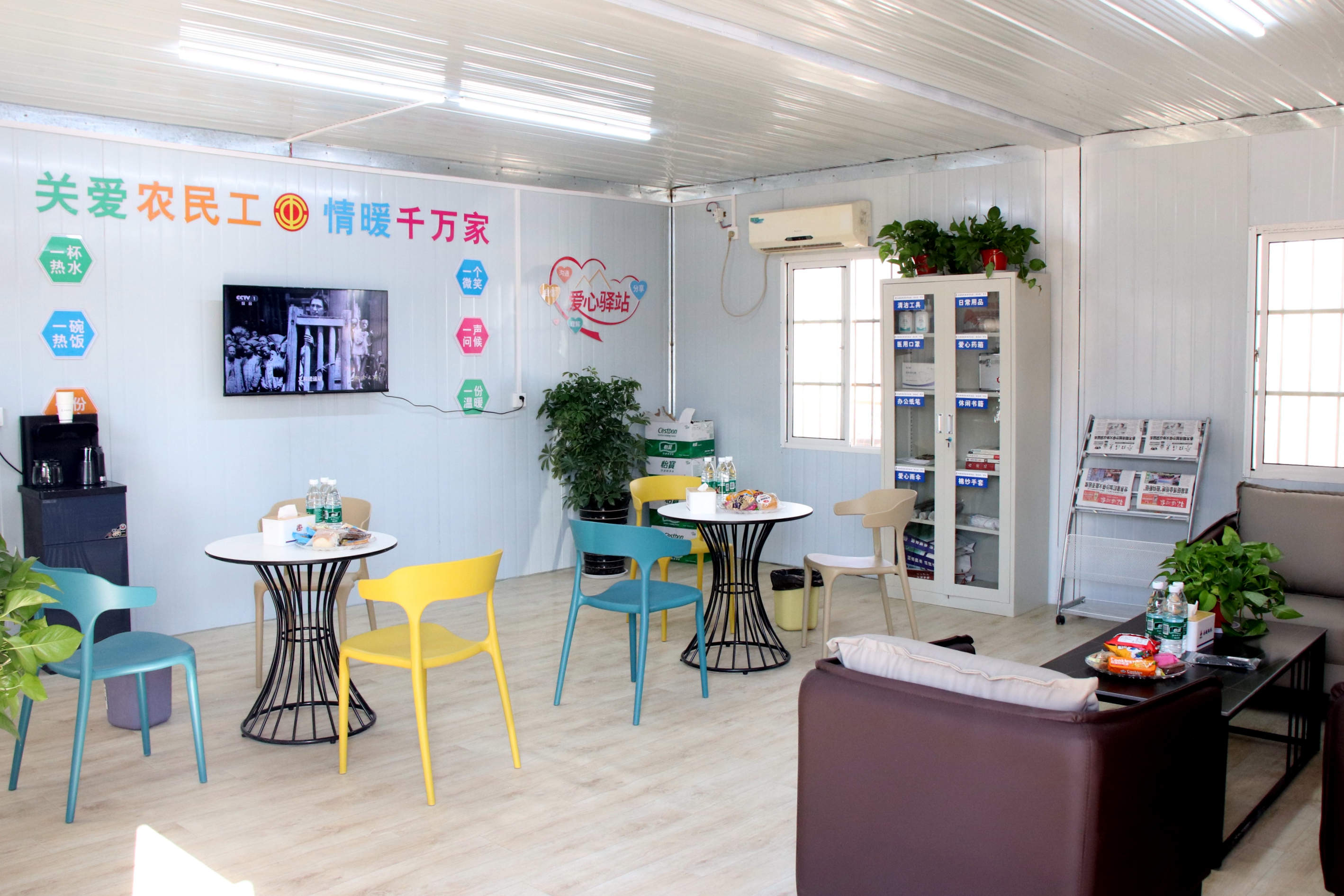 項(xiàng)目工會驛站自建立以來,始終秉持著“關(guān)愛戶外勞動者,打造幸福空間”的宗旨,不斷完善設(shè)施配備、強(qiáng)化服務(wù)功能。工會驛站內(nèi)配備空調(diào)、電視、充電插座、飲水機(jī)等設(shè)施,急救醫(yī)藥箱、書籍報(bào)刊、愛心雨傘等一應(yīng)俱全,切實(shí)改善了戶外勞動者的工作休息條件,成為了項(xiàng)目勞動者的歇腳地、加油站、連心橋。