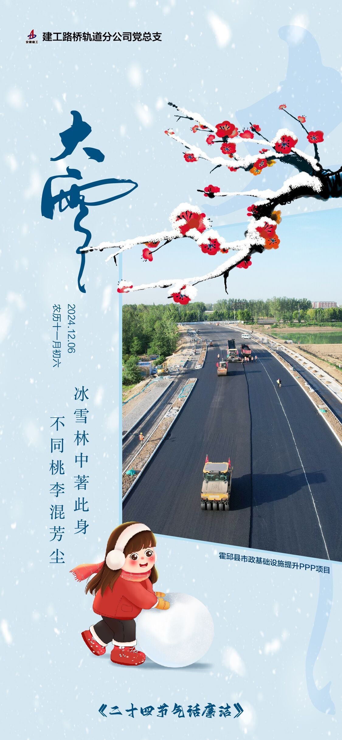 創(chuàng)新推進“節(jié)氣話廉”。分公司積極探索創(chuàng)新廉潔文化“打開方式”,堅持守正創(chuàng)新,將節(jié)氣特征、廉潔故事與清風(fēng)廉語充分融合,精心制作“節(jié)氣話廉”宣傳海報,讓黨員職工在潛移默化中感受到有溫度和底蘊的廉潔教育,截至目前,已發(fā)布系列海報16期。