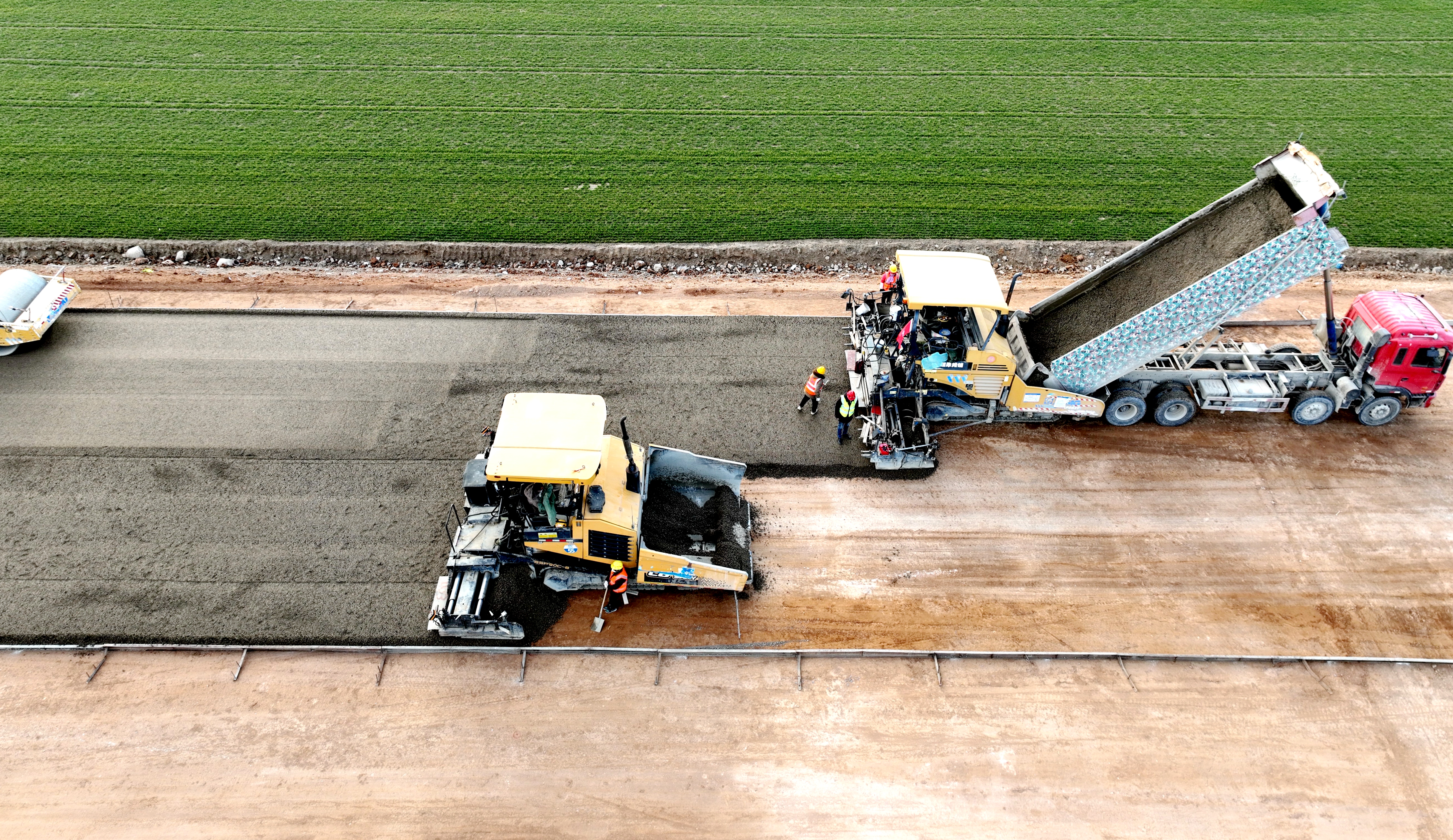 截至2月9日,項(xiàng)目橋面系及附屬工程已進(jìn)入收尾階段,主線路基全部施工完成;水穩(wěn)底基層單幅攤鋪完成49.5千米,下基層單幅攤鋪完成37.5千米,上基層單幅攤鋪完成30.8千米,瀝青下面層單幅攤鋪完成19.3千米,瀝青中面層單幅攤鋪完成18.8千米,瀝青上面層單幅攤鋪完成1.4千米。