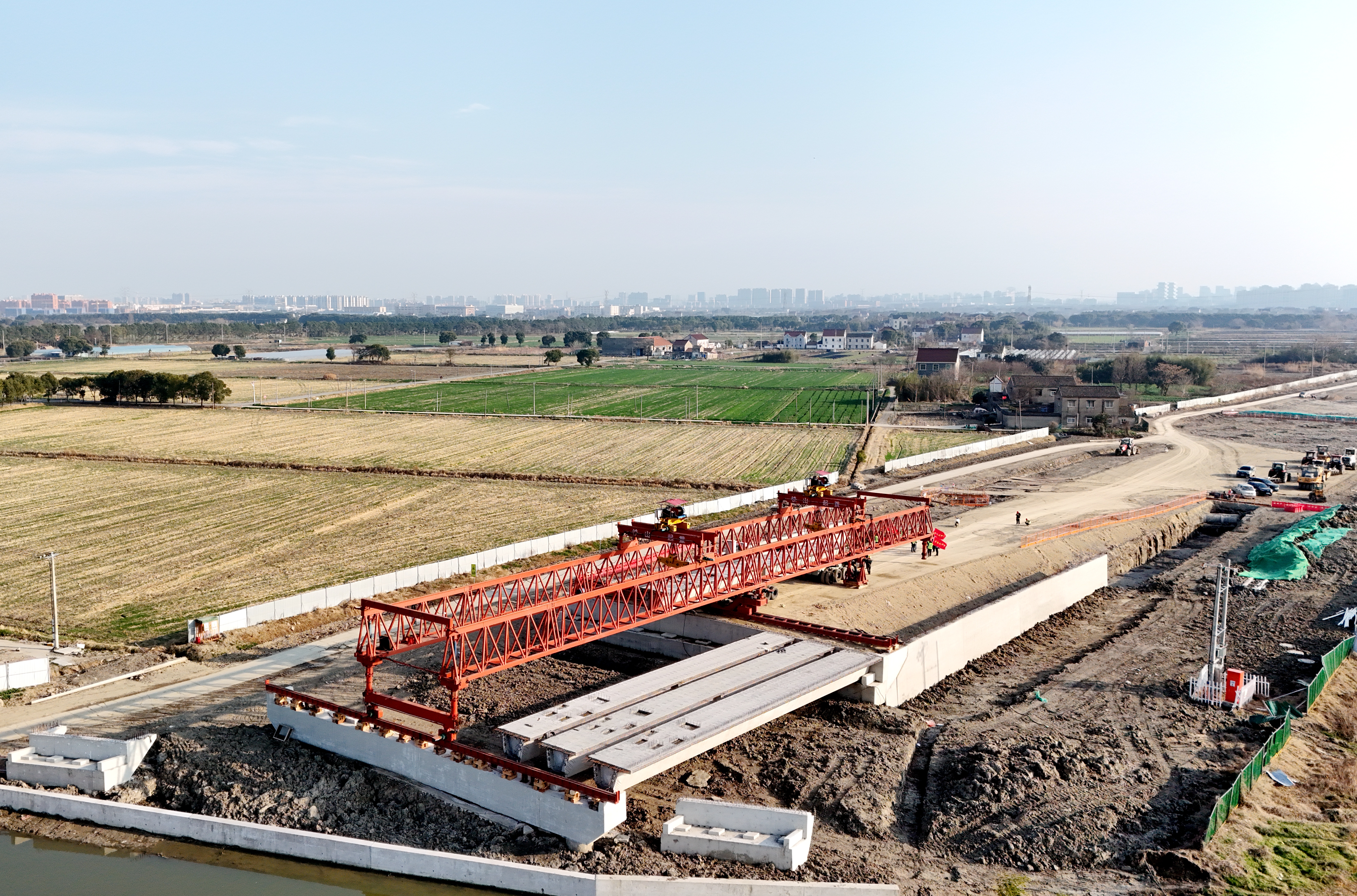 春暉大干正當時 | 建工路橋浙江524國道項目首片預(yù)制箱梁架設(shè)完成