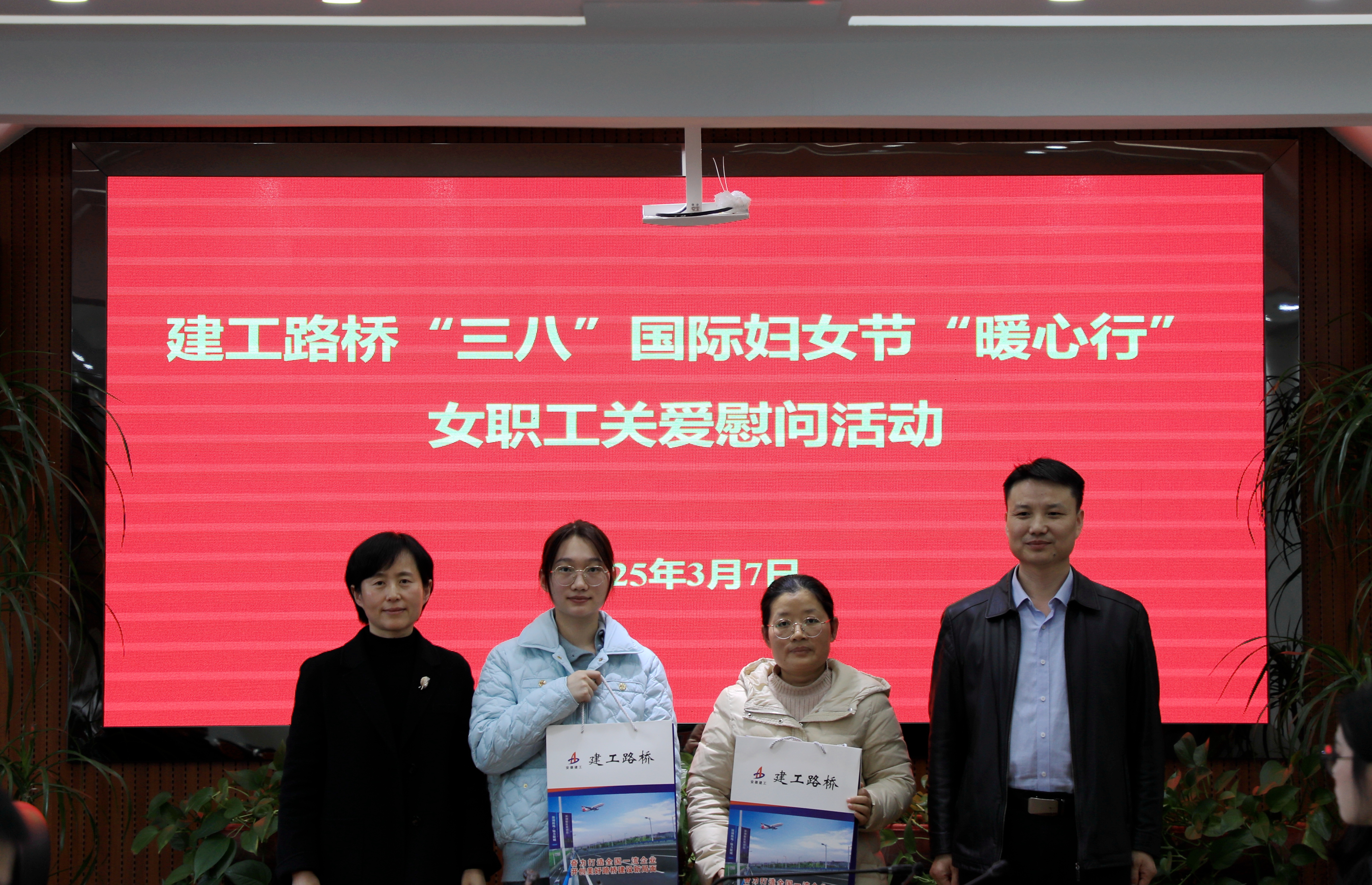 3月7日下午,為慶祝第115個(gè)“三八”國(guó)際勞動(dòng)?jì)D女節(jié),建工路橋公司工會(huì)開展“暖心行”女職工關(guān)愛慰問活動(dòng)。公司黨委副書記、總經(jīng)理周世明,黨委委員、紀(jì)委書記王鵬,黨委委員、副總經(jīng)理、工會(huì)主席石懷遠(yuǎn)出席活動(dòng)。