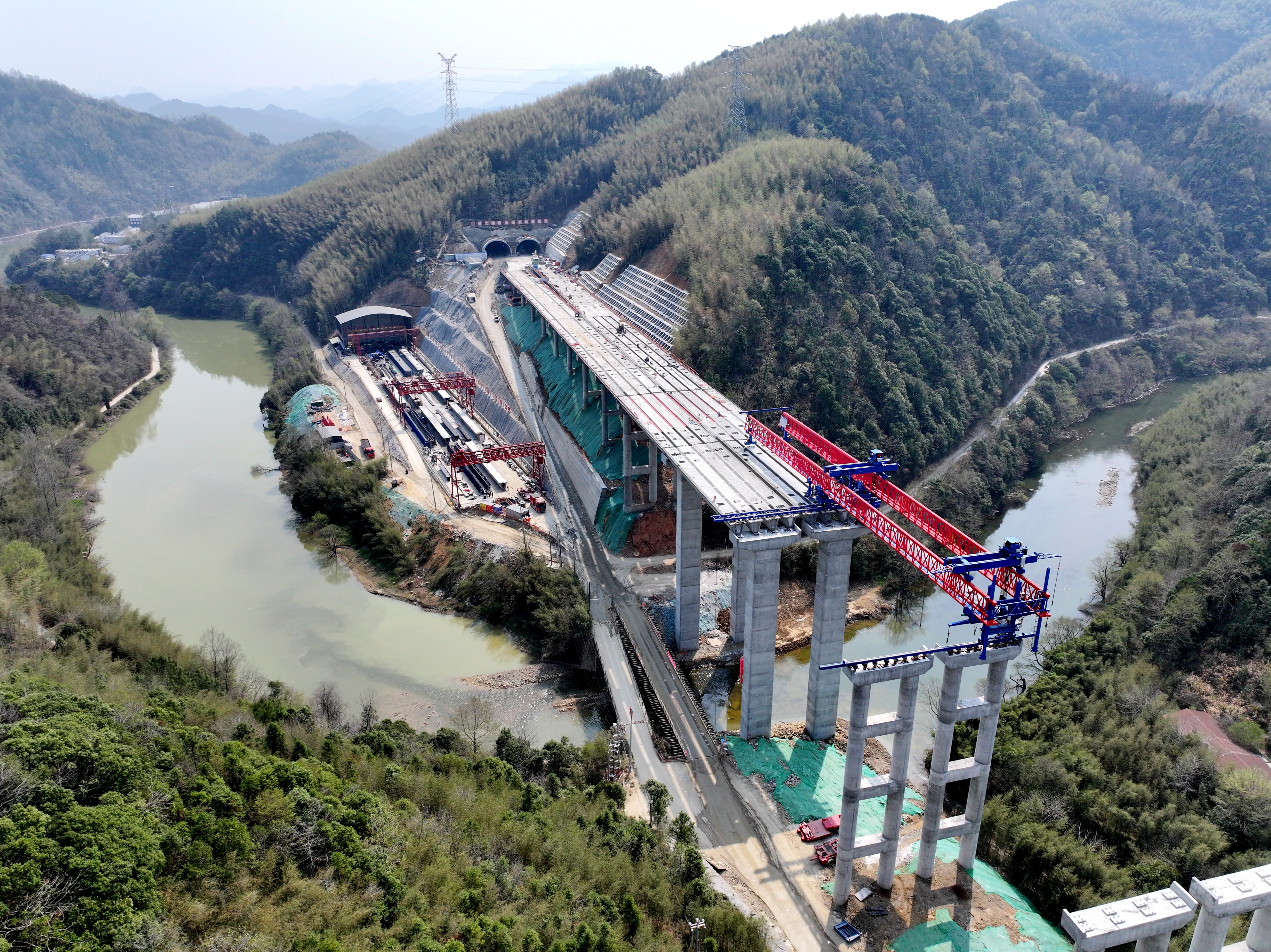 在橋梁施工方面,橫跨浣溪河的特大橋建設(shè)同樣面臨挑戰(zhàn)。為克服12%運(yùn)梁坡度帶來的困難,項(xiàng)目創(chuàng)新采用“雙主機(jī)雙制動運(yùn)梁炮車”技術(shù),經(jīng)過多次模擬推演,成功實(shí)現(xiàn)首片40米箱梁精準(zhǔn)架設(shè)。這一突破,標(biāo)志著項(xiàng)目施工從下部結(jié)構(gòu)向上部結(jié)構(gòu)轉(zhuǎn)換,實(shí)現(xiàn)橋梁與隧道工序無縫銜接,為后續(xù)架梁作業(yè)奠定基礎(chǔ)。截至目前,項(xiàng)目路基填筑已完成98%,橋梁樁基工程全部完工,梁板預(yù)制架設(shè)進(jìn)度突破55%。