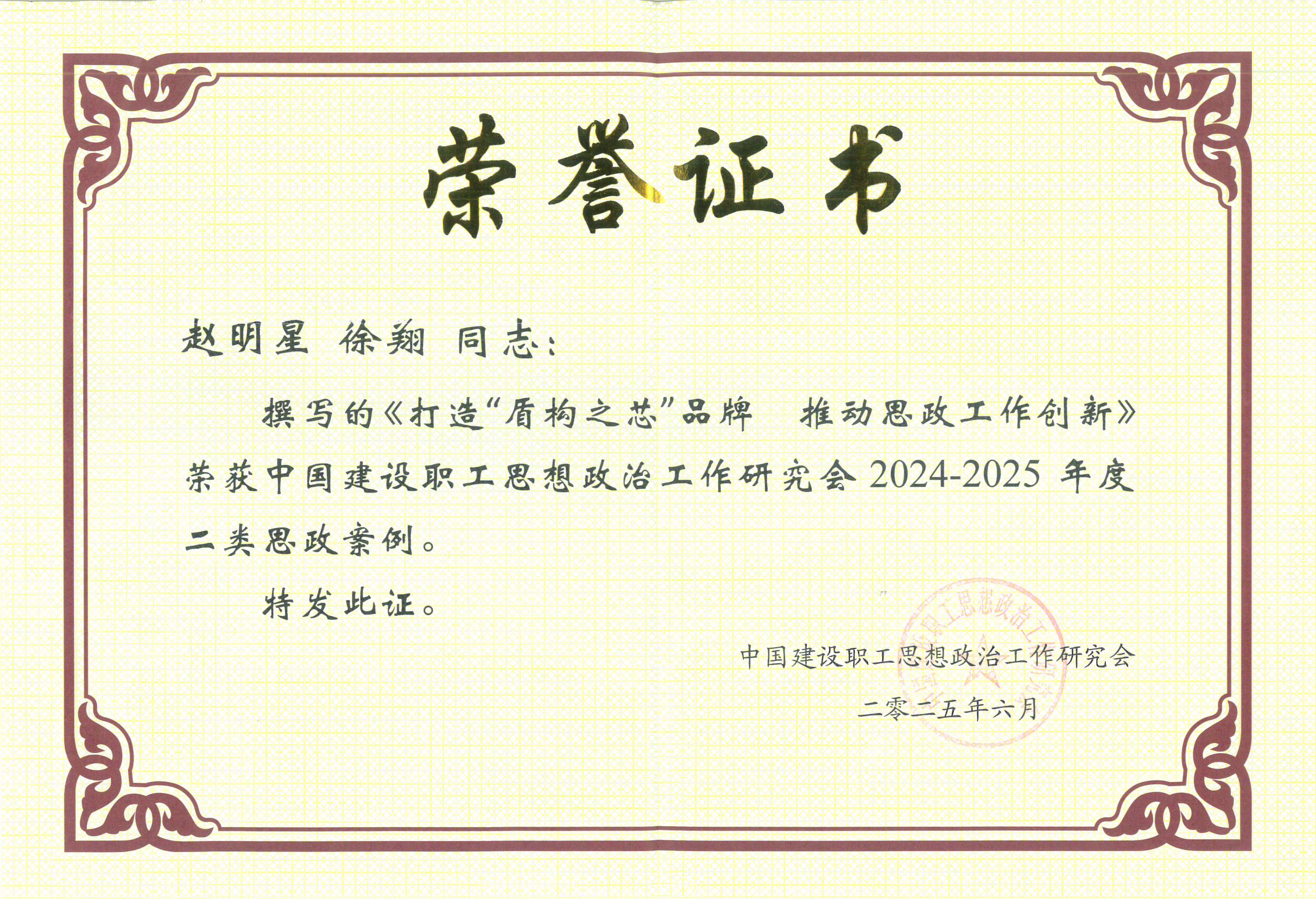 公司思政案例獲評2024-2025年度中國建設(shè)職工思想政治工作二類創(chuàng)新案例