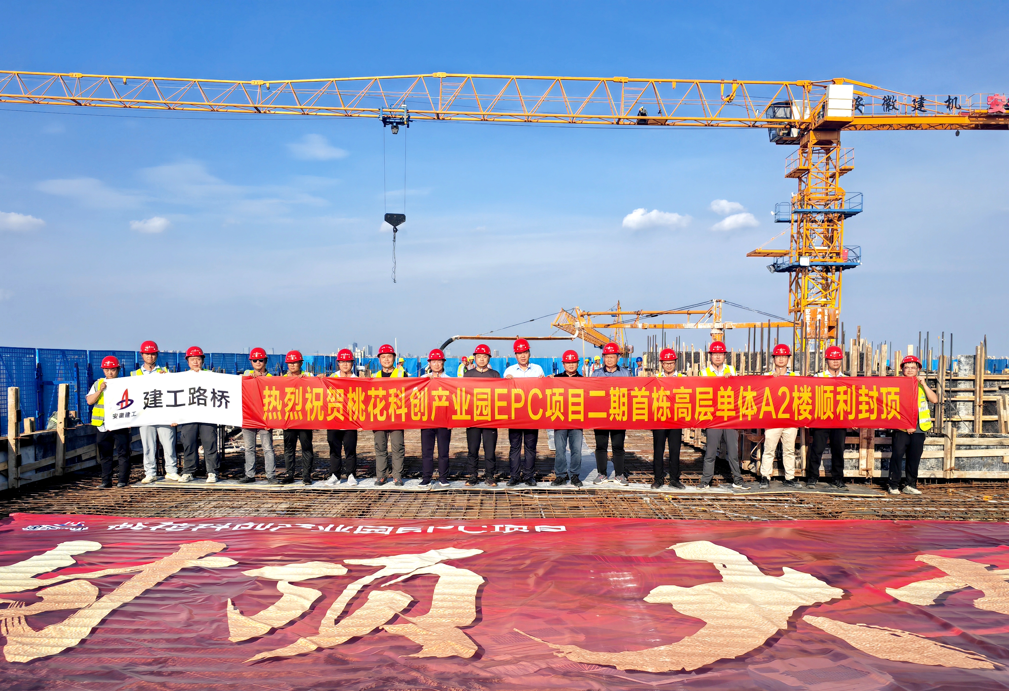 黨建與生產(chǎn)的同頻共振,不僅破解了建設(shè)難題,更催生了“1+1>2”的倍增效應(yīng)。項(xiàng)目黨支部緊扣項(xiàng)目不同建設(shè)周期的特點(diǎn),精心組織開(kāi)展黨員包保督導(dǎo)、任務(wù)攻關(guān)等特色活動(dòng)十余次,為項(xiàng)目順利推進(jìn)筑牢堅(jiān)實(shí)保障。尤其在二期主體結(jié)構(gòu)攻堅(jiān)階段,黨支部聚焦“急難險(xiǎn)重”任務(wù),火速組建項(xiàng)目黨員突擊隊(duì)、設(shè)立7個(gè)黨員先鋒崗,以“越是艱險(xiǎn)越向前”的擔(dān)當(dāng),成功攻克施工作業(yè)面廣、交叉作業(yè)密集、施工精度嚴(yán)苛等重大挑戰(zhàn),科學(xué)統(tǒng)籌工序銜接、優(yōu)化資源配置,最終創(chuàng)下地上結(jié)構(gòu)“6天/層”的施工佳績(jī),僅用7個(gè)月實(shí)現(xiàn)主體結(jié)構(gòu)封頂,生動(dòng)詮釋了黨建引領(lǐng)下的“路橋速度”與“紅色擔(dān)當(dāng)”。項(xiàng)目獲評(píng)2024年度安徽省重大項(xiàng)目建設(shè)勞動(dòng)競(jìng)賽二等獎(jiǎng)等榮譽(yù)稱號(hào)。