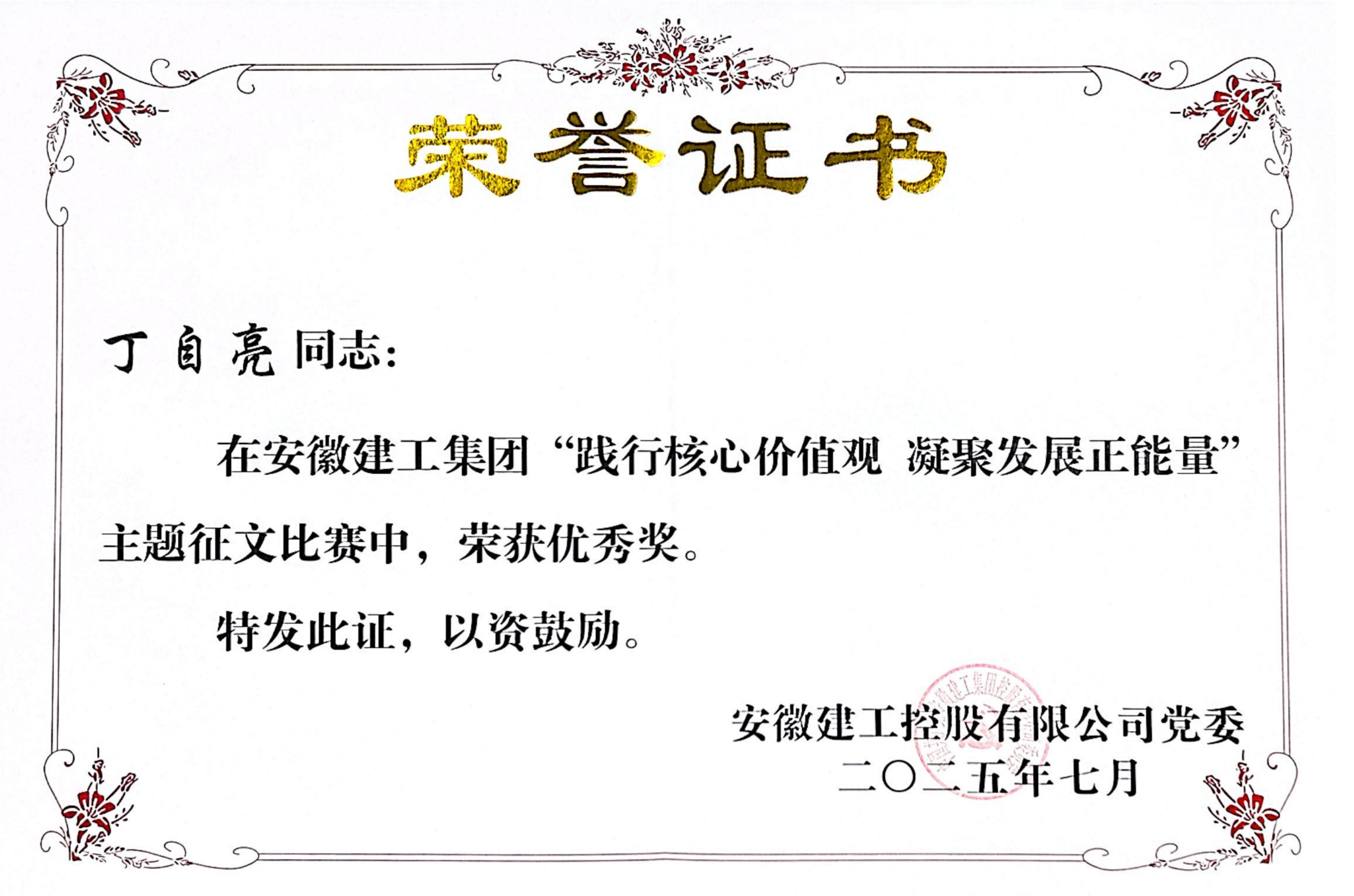 近日,集團(tuán)“踐行核心價值觀,凝聚發(fā)展正能量”主題征文比賽結(jié)果公布,公司報送的多個作品在數(shù)十篇優(yōu)秀作品中脫穎而出。其中,合肥分公司趙小龍同志作品《踐行核心價值觀,織就立體交通新篇章——安徽建工合肥新橋機(jī)場綜合交通中心建設(shè)紀(jì)實》斬獲一等獎,公路一公司丁自亮同志作品《戎裝換工服 丹心映初心——一名退役軍人的核心價值觀踐行之路》、橋梁公司高凡同志作品《經(jīng)緯縱橫處 燈火照長路——建工價值觀的泥土與鋼》榮獲優(yōu)秀獎。