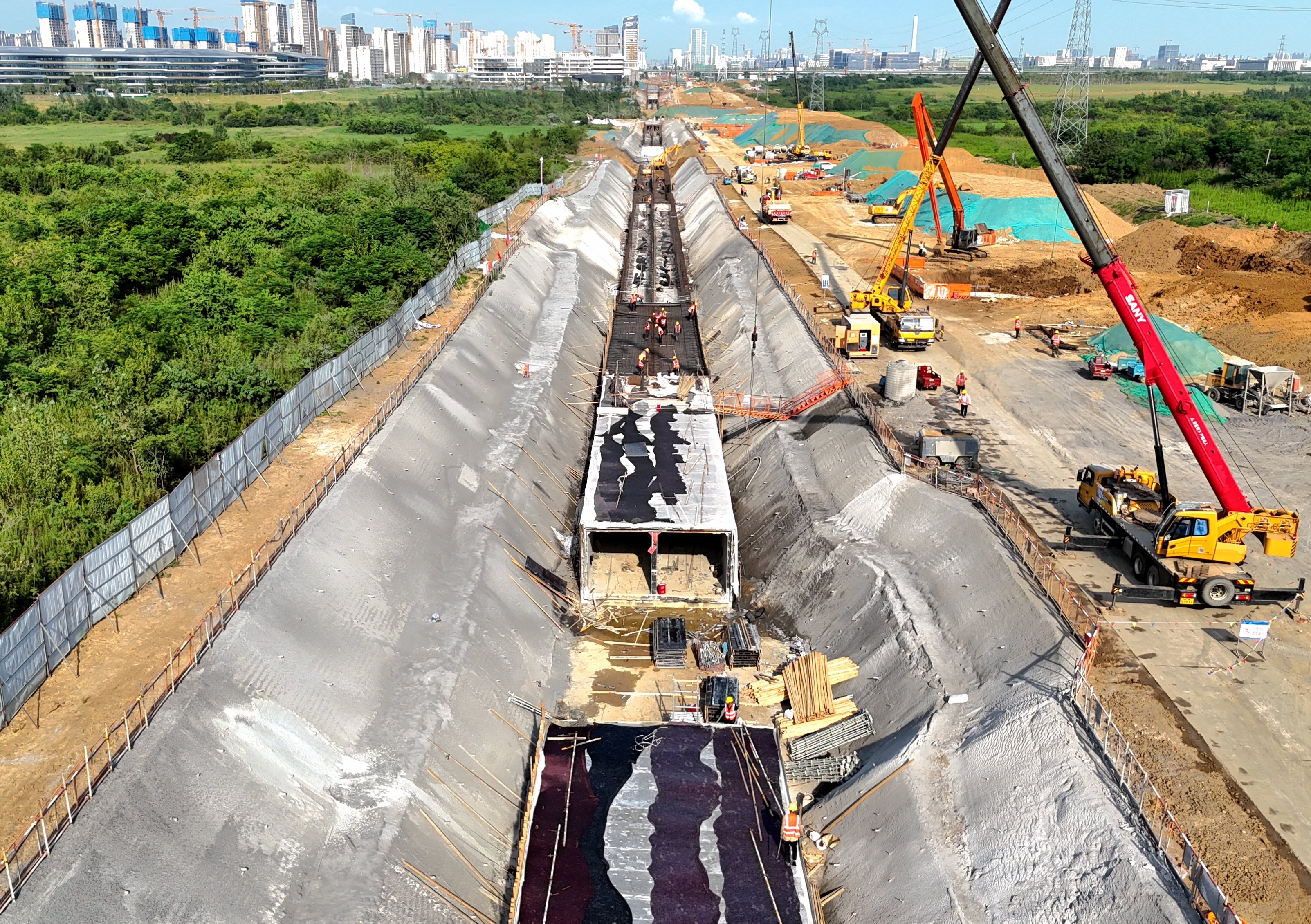 自項(xiàng)目開(kāi)工建設(shè)以來(lái),全體參建人員凝心聚力、攻堅(jiān)克難,工程推進(jìn)成效顯著。截至目前,項(xiàng)目各分項(xiàng)工程均按計(jì)劃穩(wěn)步推進(jìn),路基工程采用分段平行施工模式高效完成清表3170米、清淤6000方;橋梁工程樁基全線完工,橋梁下部結(jié)構(gòu)施工按序推進(jìn),預(yù)制梁板同步進(jìn)入標(biāo)準(zhǔn)化生產(chǎn)階段。管廊工程作為項(xiàng)目建設(shè)的“重頭戲”,已完成全線3170米基坑開(kāi)挖,同步推進(jìn)底板、頂板結(jié)構(gòu)施工,其中底板結(jié)構(gòu)澆筑完成1200米,頂板結(jié)構(gòu)完成440米。