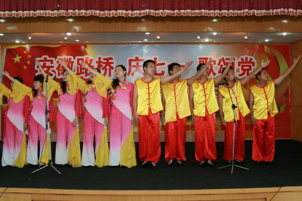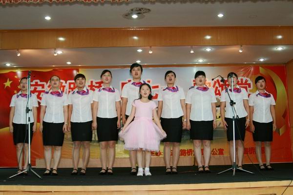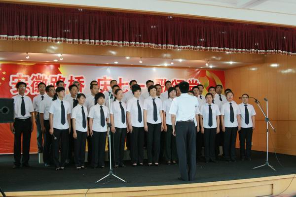 緊接著,慶七一,歌頌黨職工歌詠大賽開始。比賽在路面公司激昂的《沒有共產(chǎn)黨就沒有新中國》合唱聲中拉開序幕,比賽場上,參賽隊(duì)員精神飽滿,著裝整齊,懷著對中國共產(chǎn)黨、對祖國的深厚感情,熱情高歌《今天是你的生日我的中國》、《愛我中華》、《歌唱祖國》、《精忠報(bào)國》、《咱們工人有力量》、……發(fā)自肺腑的歌聲深深感動了現(xiàn)場觀眾。