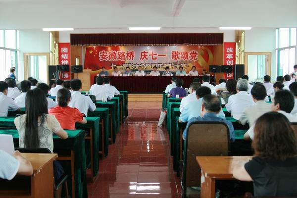 會議在雄壯的《國際歌》聲中開始。黨委書記陳光磊作了《牢記宗旨、珍惜榮譽(yù)、勇往直前》激情洋溢的講話。她說:今天我們大家在此歡聚一堂,紀(jì)念我們偉大的中國共產(chǎn)黨成立88周年,并對公司2008年度的先進(jìn)基層黨組織和優(yōu)秀黨員、黨務(wù)工作者進(jìn)行集中表彰。這是一個喜慶的日子,也是一個值得紀(jì)念的日子。在此,我謹(jǐn)代表公司黨委對所受表彰的先進(jìn)單位和個人表示熱烈的祝賀,向公司所有的黨員表示崇高的敬意。接著她深情回顧了黨的光輝歷程,同時要求我們也應(yīng)該更加自覺地牢記黨的宗旨,在自己的工作崗位上勤奮、踏實(shí)、敬業(yè)的工作,為黨徽增光,為黨旗添彩。隨后,陳書記對2008年的黨委工作進(jìn)行了回顧總結(jié),并對2009年下半年就如何進(jìn)一步加強(qiáng)黨的建設(shè),深入學(xué)習(xí)實(shí)踐落實(shí)科學(xué)發(fā)展觀,更好地發(fā)揮黨組織的政治核心作用、戰(zhàn)斗堡壘作用和黨員的先鋒模范作用,提了幾點(diǎn)要求:一、繼續(xù)認(rèn)真開展學(xué)習(xí)實(shí)踐科學(xué)發(fā)展觀活動,充分認(rèn)清制約公司科學(xué)發(fā)展的問題,并有效整改,使公司走上科學(xué)發(fā)展的軌道;二、轉(zhuǎn)變觀念,找準(zhǔn)黨建工作的“切入點(diǎn)”,積極主動的融入中心工作,充分發(fā)揮基層黨組織的戰(zhàn)斗堡壘作用;三、充分發(fā)揮共產(chǎn)黨員先鋒模范作用,增強(qiáng)號召力、凝聚力、戰(zhàn)斗力。最后,陳書記號召全體黨員把全部心思和精力集中到加快公司發(fā)展上,把各方面的力量凝聚到加快公司發(fā)展上,把共產(chǎn)黨人的先進(jìn)性體現(xiàn)到加快公司發(fā)展上,以更加飽滿的熱情、更加務(wù)實(shí)的精神、更加積極的工作狀態(tài)投入到各項(xiàng)工作中去,團(tuán)結(jié)帶領(lǐng)公司廣大員工,努力把握發(fā)展的大好機(jī)遇,為促進(jìn)安徽路橋的穩(wěn)健發(fā)展做出新的貢獻(xiàn)。