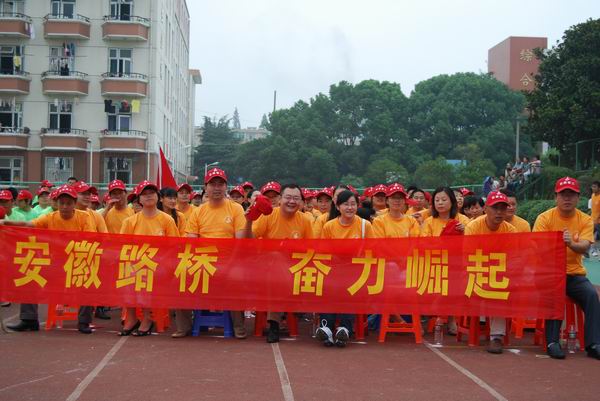 來(lái)自21個(gè)單位的近500員工組成了不同色彩的10個(gè)方隊(duì)參加了開(kāi)幕式。公司由總經(jīng)理汪衛(wèi)東、黨委書(shū)記陳光磊帶隊(duì),組成約100人的方隊(duì)舉著“安徽路橋 奮力崛起”的橫幅,高喊“安徽路橋 搶抓機(jī)遇 實(shí)現(xiàn)跨越 科學(xué)發(fā)展 共促和諧”的口號(hào),向集團(tuán)領(lǐng)導(dǎo)和兄弟單位展示了公司積極向上的風(fēng)采。
