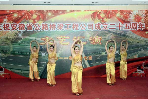 由環(huán)通公司表演的鼓樂(lè)《榮耀之光》將匯演氣氛充分展開(kāi),在激昂的鼓聲中全體員工看到了過(guò)去的榮耀,同時(shí)也看到了未來(lái)安徽路橋的榮耀之光。隨后的路面公司男聲獨(dú)唱《想家的時(shí)候》表達(dá)了路橋人舍小家為大家的“路橋情”?,F(xiàn)代舞《nobody》將歡快的舞曲、嫵媚動(dòng)感的舞蹈結(jié)合在一起,展示出路橋青年人可愛(ài)的一面。四分公司表演的三句半·路橋雜談——《四大才子》,不時(shí)讓觀(guān)眾捧腹大笑。男聲組合唱《80、90的歌》用美妙的歌聲征服了觀(guān)眾。詩(shī)朗誦《安徽路橋人之歌》結(jié)合湖北宜巴項(xiàng)目抗洪救災(zāi)的事跡,歌頌了路橋人勤奮苦干的風(fēng)采。公司機(jī)關(guān)的美麗姑娘攜手獻(xiàn)上了神秘充滿(mǎn)愛(ài)的《印度舞》,將觀(guān)眾帶入美妙高雅的民族舞蹈藝術(shù)殿堂,體現(xiàn)高尚的藝術(shù)品位和追求。橋梁公司年輕人表演了小品《路橋人的節(jié)目》,展示了路橋員工如何開(kāi)動(dòng)腦筋,為文藝匯演獻(xiàn)上最好的節(jié)目……