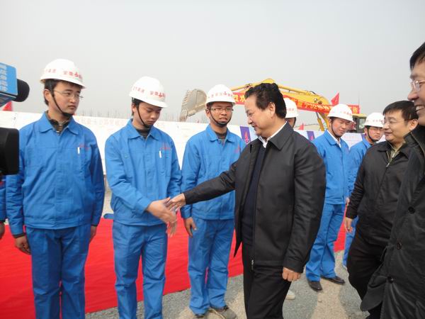 3日下午,黃省長蒞臨寧績高速07標(biāo)視察。在該項目現(xiàn)場,黃省長與汪總進(jìn)行了親切地交談。黃省長高度評價了公司近年來的發(fā)展歷程,高興地說,“以前安徽路橋還很困難,發(fā)不出工資;今天看到了安徽路橋足跡遍布十二省市,規(guī)模大,效益好,我由衷地感到欣慰?!迸R上車前,黃省長緊握汪總的手語重心長地鼓勵安徽路橋做大做強,為推動安徽公路事業(yè)發(fā)展承擔(dān)更多的責(zé)任。
