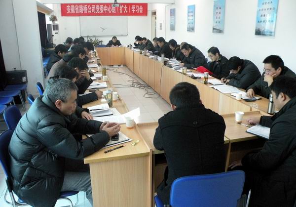 212日上午,安徽省路橋公司黨委中心組擴大學習會在公司機關四樓會議室召開,會期一天。公司領導班子成員、各基層單位及機關各職能部門負責人和部分項目經(jīng)理代表參加了學習會議。公司總經(jīng)理汪衛(wèi)東主持會議。