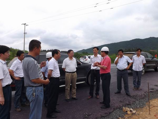 626上午,省高速公路控股集團(tuán)公司副總經(jīng)理錢東升、建設(shè)處處長蘇新國、宣寧高速項(xiàng)目辦主任方昱、項(xiàng)目辦總工于斌一行蒞臨宣寧路面02標(biāo)視察指導(dǎo)工作。省路橋路面公司總經(jīng)理王遠(yuǎn)勝陪同視察。
