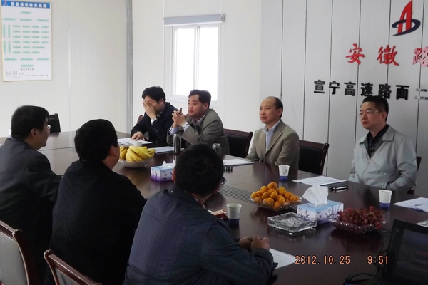 在該項目召開的總結(jié)交流會上,趙總一行聽取了該項目負(fù)責(zé)人關(guān)于前期工作進展總體情況及標(biāo)準(zhǔn)化建設(shè)成果的匯報。對于宣寧路面02標(biāo)項目選址、場地規(guī)劃建設(shè)、文明施工以及企業(yè)文化建設(shè)等方面工作,趙總一行表示了肯定,同時對項目下步重點工作提出了要求和期望。