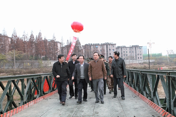 為貫徹交通戰(zhàn)備工作“平時服務(wù)、急時應(yīng)急、戰(zhàn)時應(yīng)戰(zhàn)”總要求,根據(jù)省交通戰(zhàn)備辦公室2012年交通戰(zhàn)備工作安排,1130日由集團公司交戰(zhàn)辦組織安徽省公路工程保障大隊在合肥警備區(qū)教導隊訓練場進行 “321“戰(zhàn)備鋼橋架設(shè)演示。公司承辦了此次演示活動。此次演示也是全省交通戰(zhàn)備工作會議的一項內(nèi)容。南京軍區(qū)交戰(zhàn)辦副主任、軍區(qū)聯(lián)勤部、軍交運輸部副部長王鐵,省交戰(zhàn)辦主任、交通運輸廳廳長梅勁,省交戰(zhàn)辦常務(wù)副主任、交通運輸廳副廳長羅寧等領(lǐng)導出席了觀摩活動。省國動委“八辦”專職副主任,省交通運輸廳機關(guān)各處室負責人,各市交戰(zhàn)辦負責人,省高速控股集團,交投集團和建工集團分管領(lǐng)導也參加了觀摩指導。