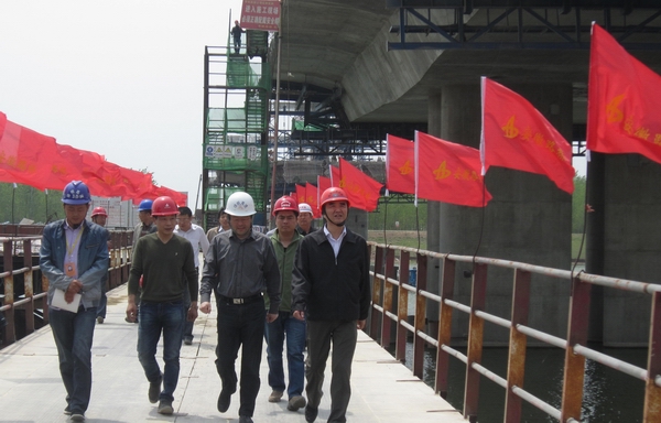 416,安徽省交通建設(shè)工程質(zhì)量監(jiān)督局局長何光在徐明高速項目辦主任鄭建中的陪同下,深入我公司承建的徐明11標(biāo)懷洪新河二號特大橋項目,對安全生產(chǎn)、工程質(zhì)量、施工進(jìn)度工作進(jìn)行督查、指導(dǎo)。