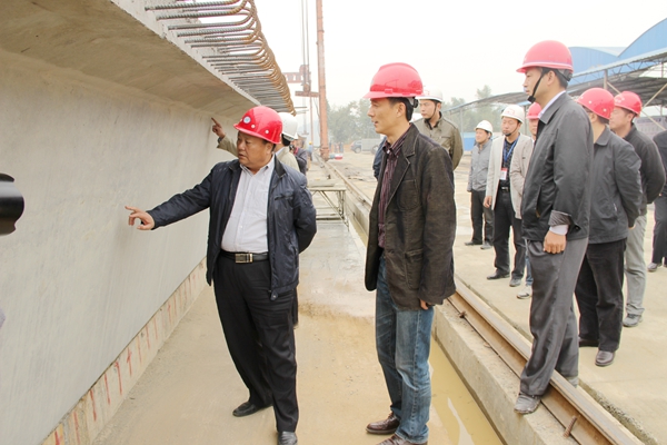 屠董事長一行在寧千02標項目玉虹大橋梁場進行了實地察看,并聽取了項目負責(zé)人對項目施工進展情況的介紹。屠董事長一行對寧千02標項目目前取得的成績表示滿意,對寧千02標項目部上下團結(jié)一致,有力抓住大干時機,加快推進施工進度的有效舉措表示肯定。屠董事長要求項目在下一步的工作中一定組織安排好后續(xù)施工計劃和進度計劃,強化細節(jié)管理,做好質(zhì)量安全管理,保證重大施工節(jié)點的落實。
