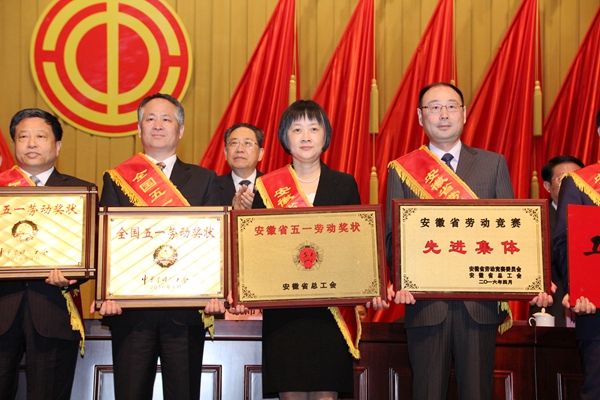 公司榮獲安徽省“五一勞動(dòng)獎(jiǎng)狀”