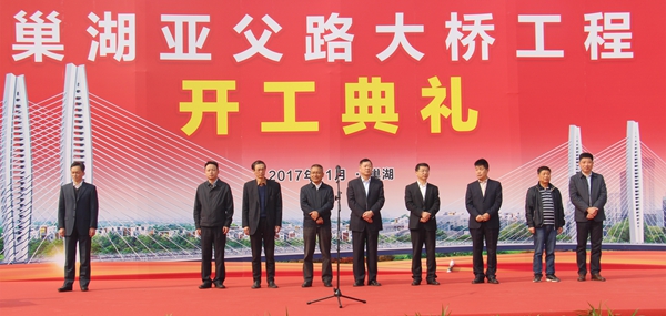 11月8日上午9時(shí)58分,巢湖市亞父路大橋項(xiàng)目隆重舉行開工典禮,合肥市委常委、巢湖市委書記胡啟生出席典禮并宣布項(xiàng)目正式開工。