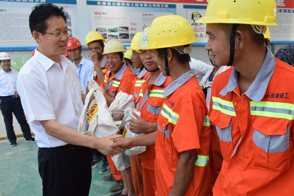 8月3日,淮北市委常委、紀(jì)委書記宰學(xué)明在市紀(jì)委監(jiān)察委和市總工會相關(guān)負(fù)責(zé)人的陪同下,深入淮北市S101及S254改建工程PPP項目施工現(xiàn)場,看望慰問公司一線參建人員。