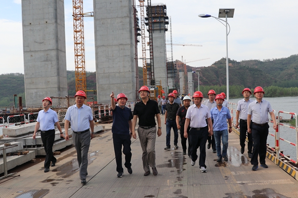 5月30日,河南省交通運(yùn)輸廳黨組成員、副廳長徐強(qiáng)一行在濟(jì)源市副市長李拴根、市交通運(yùn)輸局局長安東利、濟(jì)洛西高速公路建設(shè)有限公司董事長楊新民等陪同下,蒞臨公司承建的濟(jì)洛西高速黃河特大橋項目調(diào)研指導(dǎo)工作。