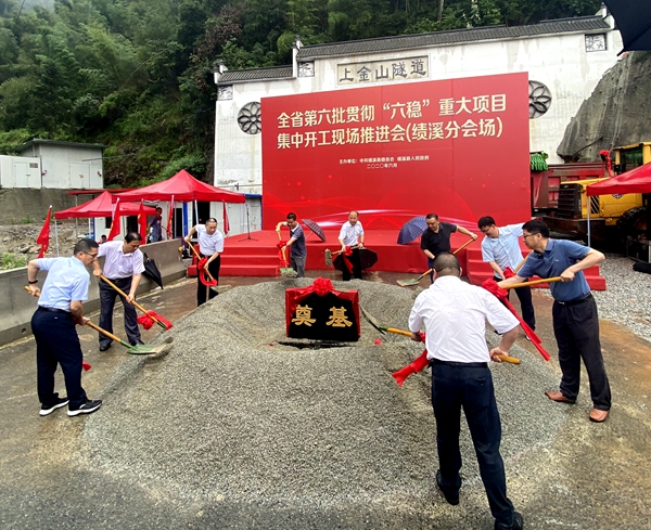 6月19日,安徽省第六批貫徹“六穩(wěn)”重大項(xiàng)目集中開工現(xiàn)場(chǎng)推進(jìn)會(huì)(績(jī)溪分會(huì)場(chǎng))在公司承建的S456績(jī)溪至譚家橋公路上金山隧道項(xiàng)目舉行,該項(xiàng)目開工儀式也同期舉辦???jī)溪縣委書記黃德泉現(xiàn)場(chǎng)宣布全縣第六批貫徹“六穩(wěn)”重大項(xiàng)目集中開工??h委常委、常務(wù)副縣長(zhǎng)胡旭華發(fā)表講話,公司黨委副書記、總經(jīng)理錢申春應(yīng)邀出席并致辭??h政府副縣長(zhǎng)、縣經(jīng)開區(qū)管委會(huì)主任劉林發(fā)主持儀式。