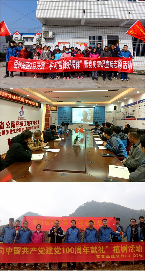 道路分公司、環(huán)通公司、租賃公司結(jié)合學(xué)雷鋒志愿者服務(wù)月活動,組織開展“團(tuán)員青年學(xué)黨史”活動。固蚌02標(biāo)開展“學(xué)習(xí)雷鋒好榜樣”暨黨史知識宣傳志愿活動,G318池殷改建01標(biāo)組織青年團(tuán)員開展“學(xué)黨史、學(xué)雷鋒”主題學(xué)習(xí)會,把學(xué)黨史成效轉(zhuǎn)換為志愿服務(wù)具體實踐。