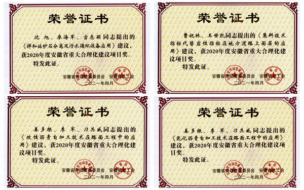 公司10項合理化建議榮獲省重大合理化建議項目獎