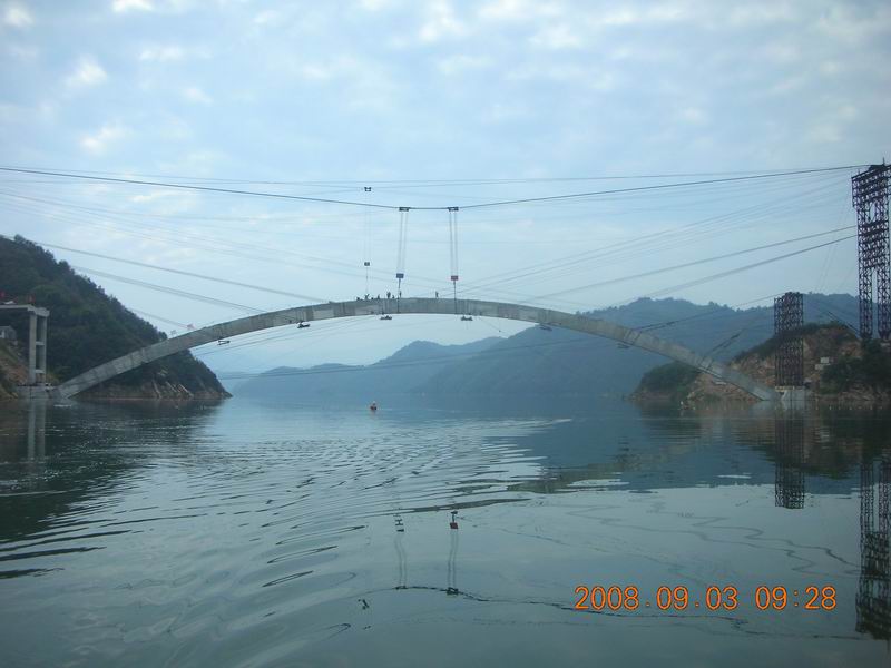 金桃大橋自2008年8月8日復(fù)工以來(lái)得到省交通廳領(lǐng)導(dǎo)高度重視,在公司領(lǐng)導(dǎo)的精心策劃,統(tǒng)籌安排下,項(xiàng)目部克服種種困難重新組織施工隊(duì)伍并投入到大規(guī)模地生產(chǎn)施工中,掀起一場(chǎng)大干熱潮,目前工程進(jìn)展一切順利。2008年10月16日金桃大橋梅山跨箱拱已全部拼裝完成并順利合攏,拱上工程立柱、系梁、蓋梁安裝施工也在有序進(jìn)行。桃?guī)X跨36片箱拱已預(yù)制完成22片。項(xiàng)目部全體員工都鼓足干勁力爭(zhēng)在4月中旬完成所有預(yù)制構(gòu)件,六月中旬爭(zhēng)取完成桃?guī)X跨箱拱的拼裝使其順利合攏。