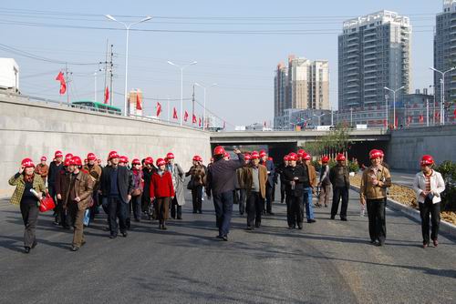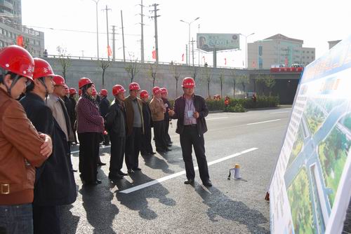 下午三點左右,在項目經(jīng)理李建成的引導下,觀摩團全體成員來到展牌前,聽取了項目工程的介紹,詳細了解了公司近幾年施工的大型精品工程。隨后,觀摩團沿北二環(huán)下穿路面至下穿橋下,觀看橋梁施工的成品工程,最后至項目穎河路瀝青攤鋪現(xiàn)場,對正在施工的項目進行了實地察看。在穎河路攤鋪瀝青現(xiàn)場,當觀摩團得知項目部為了確保工程質量,采用優(yōu)質的進口的SMA型瀝青時,無不交口稱贊。